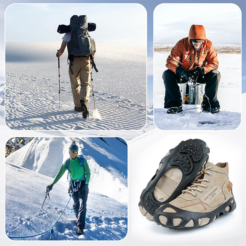 Halkfria stålstuds: Små, spetsiga dubbar i rostfritt stål som biter tag i hårda isytor.
