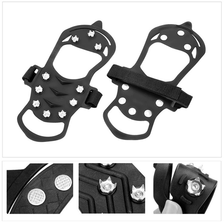 Tillverkade i slitstarkt och flexibelt material som anpassar sig efter skon för en stabil passform. De kraftiga metallspikarna ger effektivt grepp och minskar risken för att halka, även på hårt packad is.